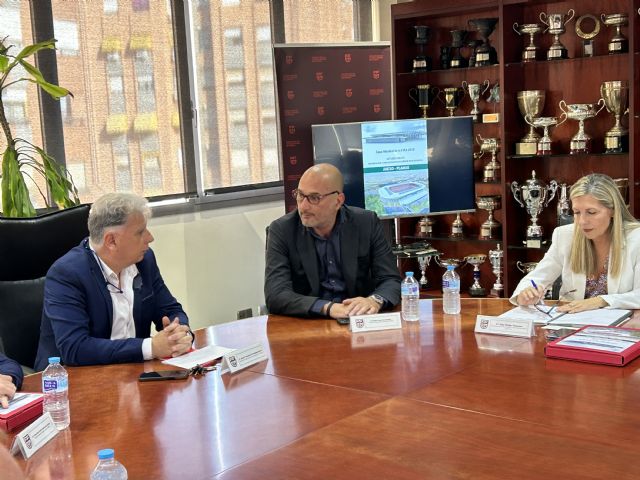 La Concejalía de Deportes es convocada en la sede de la Federación de Fútbol de la Región de Murcia para informar del estudio municipal que contempla la elevación del anillo superior con un nuevo graderío, que aumentaría el aforo en más de 45.000 espectadores