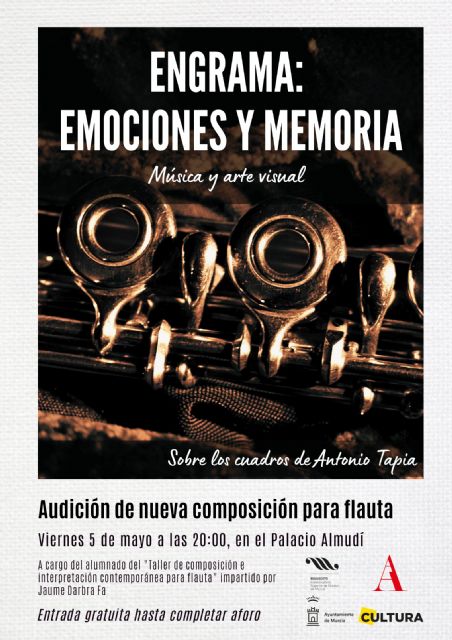 El Taller de Composición e Interpretación Contemporánea de Flauta, dirigido por Jaume Darbra Fa, ha trabajado en la composición e interpretación de distintas piezas musicales basadas en la exposición "Engrama: emociones y memoria" de Antonio Tapia, que podemos ver en la Sala Alta del Centro de Arte Palacio Almudí. Son siete piezas que mezclan música y arte visual realizadas en exclusiva para esta muestra. Las piezas son "Purkinje, del todo a la nada", "Mundos placebo", "The Only Memento", "Ciclos de la vida", "Lubricán", "Presencias", "Me volví y el hombre que me crucé ya era hierba".