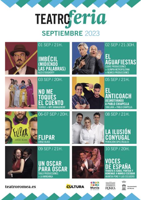 La nueva temporada teatral en Murcia 2023-2024 arrancará el próximo 1 de septiembre con la programación especial de Teatro en Feria. Durante diez días, el Teatro Romea acogerá un total de ocho espectáculos de teatro, humor, música y magia que estarán protagonizados por conocidos nombres de la escena como Josema Yuste, el ilusionista Jorge Blass o los humoristas Tian Lara, Pablo Chiapella y Alex O'Dogherty. Las entradas saldrán este jueves, a las 11 horas, a la venta tanto en taquilla como a través de la web teatroromea.es.
