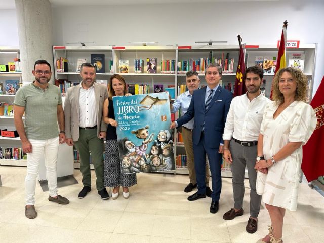 Los concejales de Educación y Atención a la Ciuadanía, Belén López; Turismo, Comercio y Consumo, Jesús Pacheco; y Cultura e Identidad, Diego Avilés, han acompañado a los integrantes de la Comisión Organizadora de la Feria del Libro de Murcia en la presentación del cartel, encabezados por el director de la Feria del Libro y presidente de la Asociación de Creadores y Artistas Palin, Jesús Boluda Del Toro.