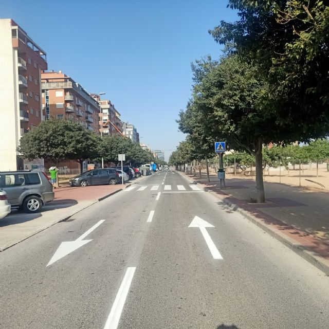 La Concejalía de Movilidad ha actuado en la calle Pedáneo José Marín Serna, dentro de su apuesta por mantener, conservar y renovar la señalización horizontal y vertical en el municipio de Murcia
