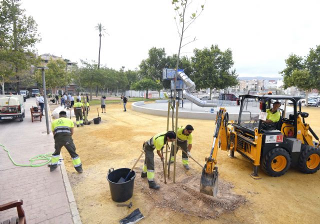 El Ayuntamiento de Murcia comienza los trabajos de reposición y reforestación del arbolado del municipio de Murcia con la plantación de 100 nuevos ejemplares en el jardín en las calles Pintor Almela Costa e Historiador Juan Torres Fontes, así como en el Jardín de los Naranjos, entre otras ubicaciones