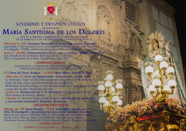 Al día siguiente, tras la Misa, habrá exposición del Santísimo y contemplación de los Dolores de la Virgen.