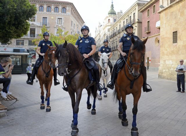 El Ayuntamiento de Murcia refuerza la seguridad de las calles de ciudad con la incorporación de la Unidad Especial de Caballería de la Policía Local de Murcia, una iniciativa enmarcada dentro de las novedades de la Feria de Murcia, y que prestará servicios de protección y representación durante todo el año.