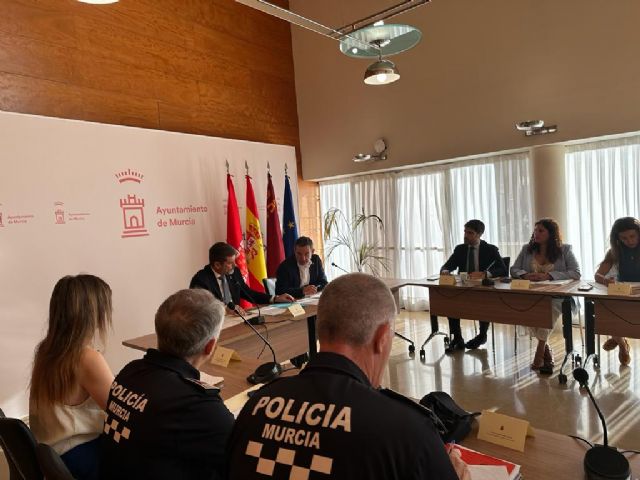 El concejal de Seguridad Ciudadana y Emergencias, Fulgencio Perona, y el delegado del Gobierno en la Región de Murcia, Francisco Jiménez, han presidido esta mañana la Junta Local de Seguridad con motivo de la Feria de Septiembre en Murcia, que arranca el 31 de agosto.