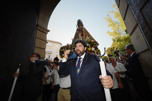 El jefe del Ejecutivo regional en funciones, Fernando López Miras, asistió hoy a la recepción oficial de la patrona de Murcia, Nuestra Señora de la Fuensanta, en la iglesia del Carmen, y a la posterior procesión hasta la Catedral.
