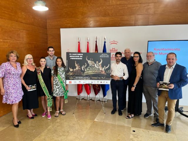 El concejal de Cultura e Identidad, Diego Avilés, acompañado por el presidente de la Peña Huertana ‘La Crilla', Juan García, el presidente de la Federación de Peñas Huertanas de Murcia y socios de la organización cultural, ha presentado la edición número 43 del Certamen Regional de Parrandas.