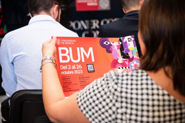El mes de octubre en la Universidad de Murcia es sinónimo de Bienvenida Universitaria (BUM). Más de cien actividades repartidas entre el 2 y el 26 de octubre destinadas a toda la comunidad universitaria, pero en especial al alumnado, que podrá disfrutar de una completa programación cultural, lúdica, deportiva y solidaria. El rector, José Luján, y la vicerrectora de Estudiantes y Empleo, Alicia Rubio, han detallado este miércoles en rueda de prensa los detalles de toda la programación, que pretende ser el escaparate de la oferta extracurricular que quienes estudian en la Universidad de Murcia pueden disfrutar a lo largo de su formación como complemento a la activad académica.