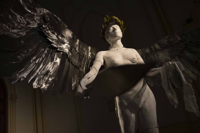 La obra se compone de una representación de la diosa de la victoria Niké; alrededor de la que surgen fragmentos de vendas de yeso que han sido despojados del positivo en el proceso técnico. El artista trata de investigar y descubrir diferentes resultados escultóricos, indagando nuevos retos sobre el significado de una representación compleja.