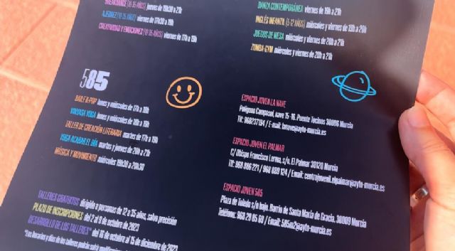 El próximo lunes  16 de octubre arrancan los 29 talleres que se van a desarrollar en los tres centros juveniles del Ayuntamiento de Murcia. Todos los cursos, que serán gratuitos, se celebrarán hasta el  15 de diciembre en los centros de La Nave (Puente Tocinos), el espacio joven de El Palmar y el 585m2 de Santa María de Gracia.