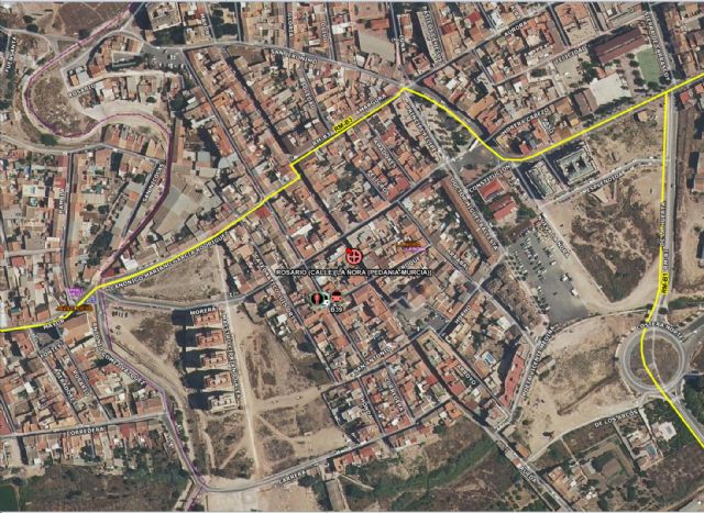 Servicios sanitarios de emergencia atienden a cuatro personas, en un incendio de vivienda, en la calle Rosario de la Ñora, en el término municipal de Murcia.