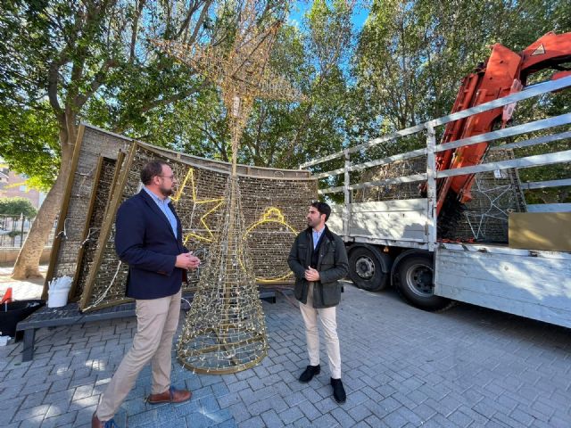 Además, los murcianos van a poder disfrutar de varios elementos de gran porte repartidos por todo el municipio. Entre ellos, se encuentran un gran árbol de forma cónica de 20 metros de altura, que se está instalando en el Plano de San Francisco; una Corona de Reyes Magos tridimensional , que se ubicará en la Plaza de Santo Domingo, donde también habrá un carrusel; y una caja de regalo en la Plaza Romea. Estos tres grandes elementos serán transitables.