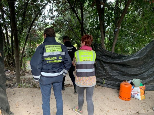 Los servicios municipales de Urbanismo, SEMAS (Servicio de Emergencia Móvil y Atención Social) y Policía Local de Murcia, apoyados por Policía Nacional, han intervenido este martes a primera hora de la mañana para desalojar el poblado chabolista que se había formado en el entorno de La Fica y que ha ido creciendo en los últimos años.