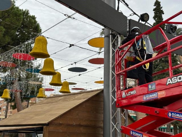 El alcalde de Murcia, José Ballesta, acompañado por el teniente de alcalde y concejal de Desarrollo Urbano y Ciudad Inteligente, José Guillén, y el concejal de Cultura e Identidad, Diego Avilés, han supervisado esta mañana los trabajos de montaje del Gran Árbol de Navidad, que será inaugurado el próximo sábado 9 de diciembre, a las 19:00 horas, con un gran espectáculo de luz, fuegos artificiales, actuaciones musicales y muchas sorpresas más. Cerca de un centenar de operarios trabajan en el montaje de la gran atracción navideña.