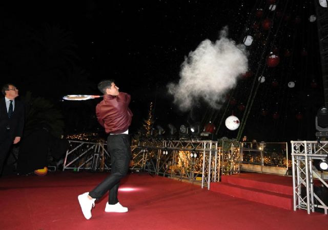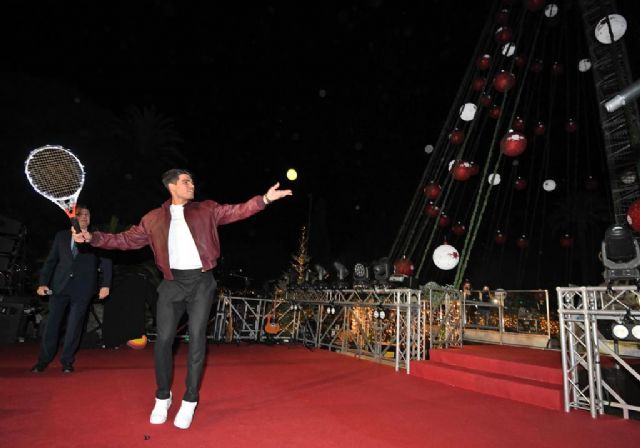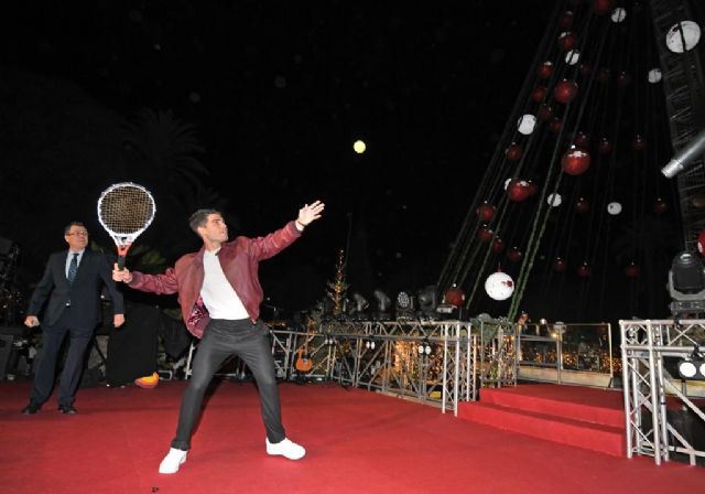 El tenista de El Palmar ha encendido el Gran Árbol de la Plaza Circular lanzando con una raqueta de luces LED una bola luminosa que ha quedado colgada en la estructura, en un espectacular acto en el que también ha actuado la cantante murciana Ruth Lorenzo y que ha contado con la asistencia de una gran multitud de murcianos