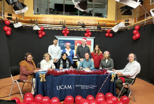 Murcia, 20/12/2023. Con caras de alegría, pero con muchos nervios, llegaba al Estudio de Radio de la Universidad Católica de Murcia un grupo de mayores para hacer un programa de radio especial de Navidad junto a estudiantes de la Facultad de Comunicación. Esta actividad se enmarca en el convenio de colaboración entre la UCAM y la Fundación 'La Caixa' para el desarrollo del proyecto de investigación 'La radio como herramienta para combatir el edadismo y fomentar la participación social activa de las personas mayores', cuyo objetivo es conectar a dos generaciones muy distintas y crear espacios de colaboración entre ellas utilizando la radio como principal vehículo de comunicación.