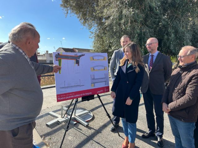 La vicealcaldesa y concejal de Fomento y Patrimonio, Rebeca Pérez, presenta, junto a los ediles de Movilidad, Gestión Económica y Contratación y de Pedanías y Vertebración Territorial, el proyecto y financiación de la infraestructura, que contará con una longitud de 44 metros y permitirá recuperar la conexión entre la zona de El Secano y el municipio de Beniel