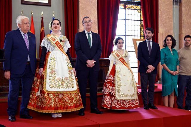 "Esta es una tierra con historia y corazón, una historia que justifica nuestra presencia en esta sala y un gran corazón para darles la bienvenida a todos", así ha recibido esta mañana el alcalde de Murcia, José Ballesta, a las recién coronadas Reinas de la Huerta, Isabel García y Alexia Montemayor, cortes de honor y delegaciones festeras invitadas a disfrutar de las Fiestas de Primavera de Murcia.