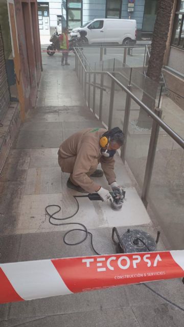 Por ello, desde el Ayuntamiento de Murcia se ha procedido al abujardado del pavimento, disminuyendo así el riesgo de resbalones, consiguiendo de este modo mejorar la accesibilidad y seguridad de la rampa.