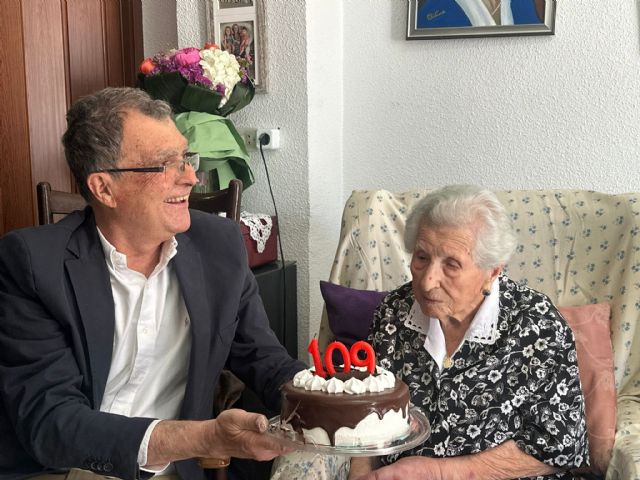 El alcalde de Murcia ha visitado a doña Concepción Lax, vecina de la pedanía de Espinardo, para felicitarla personalmente con motivo de la celebración de su 109 cumpleaños, que es mañana sábado 13 de abril
