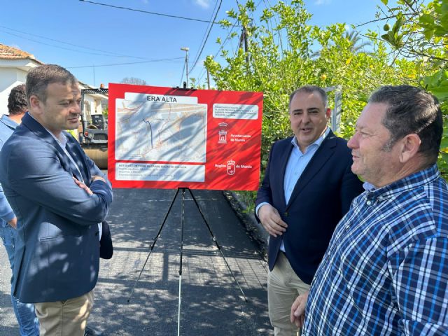 El concejal de Pedanías y Vertebración Territorial, Marco Antonio Fernández, el director general de Administración Local, Francisco Abril, y el presidente de la Junta Municipal de Era Alta, Ángel García, han visitado hoy la pedanía para comprobar el desarrollo de los trabajos, que cuentan con un presupuesto de 60.183 euros financiados por el Ayuntamiento y la Comunidad Autónoma dentro del Plan de Pedanías, Diputaciones y Barrios Periféricos y/o Deprimidos 2022-2023.