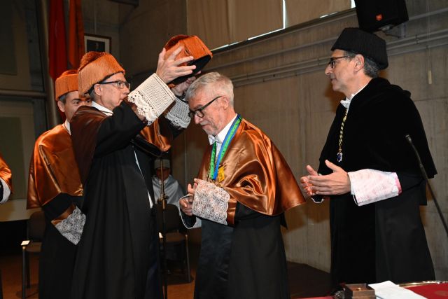 La Universidad de Murcia ha dado esta mañana la bienvenida a su claustro de honor a Mateo Valero Cortés, director del Barcelona Supercomputing Center- Centro Nacional de Computación- y referente mundial en la investigación sobre arquitectura de computadores y diseño de supercomputadores más eficientes y capaces. Esta investidura, aprobada por el Claustro de la UMU a propuesta de la Facultad de Informática, quiere reconocer la decisiva influencia que Valero Cortés, catedrático de la Universitat Politècnica de Catalunya, ha tenido en el diseño y la ingeniería de partes importantes de los procesadores empleados actualmente en diversos ámbitos, que van desde la computación móvil (teléfonos inteligentes) hasta los supercomputadores más rápidos del mundo, pasando por los usados en computadores personales y videoconsolas; procesadores que constituyen el núcleo de cualquier sistema de computación, ya que están encargados de la ejecución de los programas. El solemne acto de investidura ha tenido lugar en el salón de actos de la Facultad de Economía y Empresa, en el Campus de Espinardo, y ha estado presidido por el rector, José Luján. Además, ha contado con la asistencia de la secretaria de Estado de Telecomunicaciones e Infraestructuras Digitales, María González Veracruz, y el consejero de Universidades, Investigación, Medio Ambiente y Mar Menor, Juan María Vázquez.