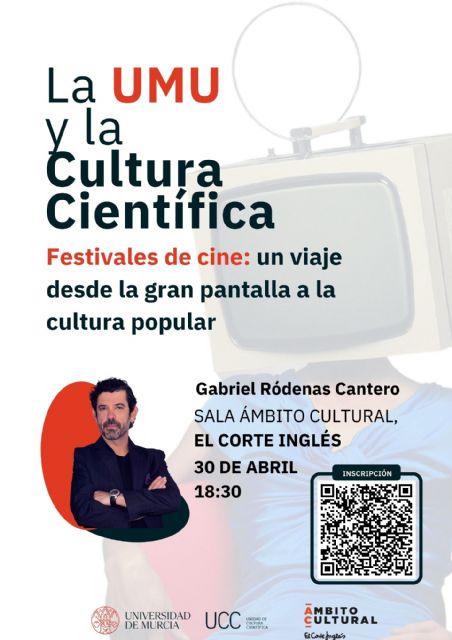 El profesor de Narrativa Audiovisual y Deontología de la Universidad de Murcia (UMU) Gabriel Ródenas impartirá la séptima conferencia del ciclo de 'La UMU y la Cultura Científica' titulada Festivales de cine: Un viaje desde la gran pantalla a la cultura popular. El próximo 30 de abril a las 18:30 horas en la Sala Ámbito Cultural de El Corte Inglés se abordará en una charla interactiva el papel de los festivales de cine y cómo influyen los galardonados entre las preferencias del público, así como su función como poderosa herramienta de marketing y difusión. Se hablará de todo lo que ocurre en el backstage, su funcionamiento y cómo los premios del cine se convierten en un reflejo de las preocupaciones sociales actuales.