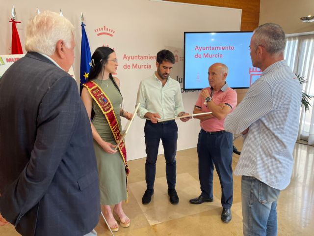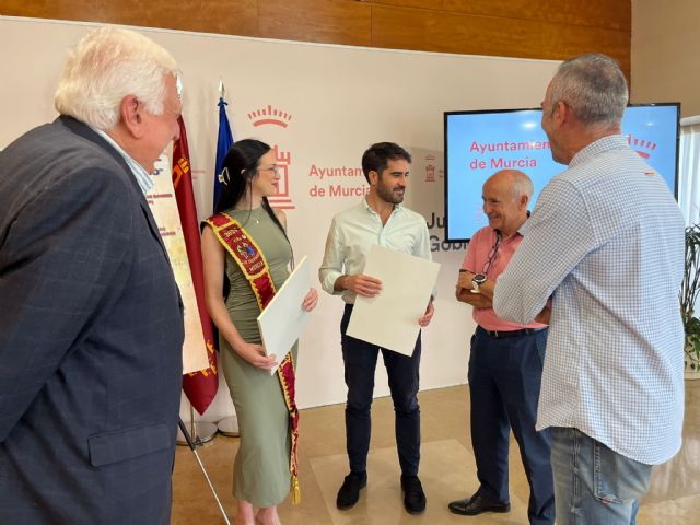 El concejal de Cultura e Identidad, Diego Avilés, ha presentado esta mañana la III Muestra de Folklore ‘Virgen de Loreto’ junto con el Presidente de la Federación de Peñas Huertanas, Juan García, con el presidente de la Peña ‘Los Güertanos’, Francisco Cantabella Jara, con el vicepresidente de esta Peña y organizador del festival, José Luis Martínez, y con María del Carmen Zapata, Reina Mayor de la Peña.