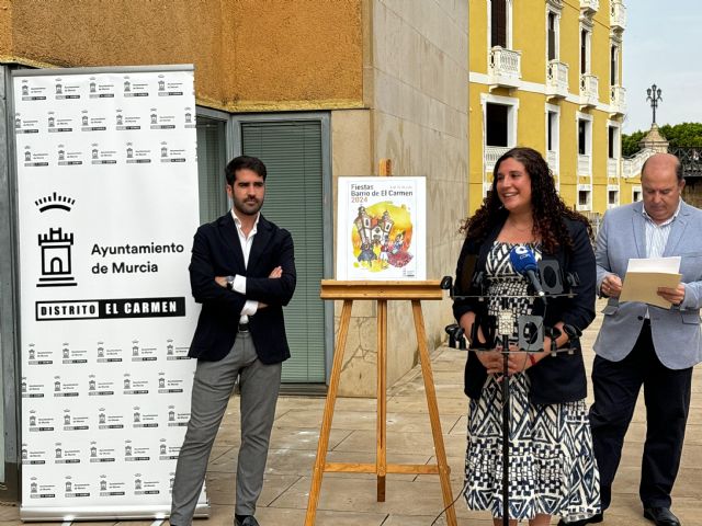 El concejal de Cultura e Identidad, Diego Avilés, ha presentado esta mañana las Fiestas del barrio de El Carmen junto con el presidente de la Junta Municipal Basilio Piñero. Al acto, también ha acudido la concejal de Talento Joven y Espacios Públicos Sofía López-Briones, pero en esta ocasión en calidad de pregonera de las fiestas de este año.