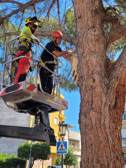 Estas 10 cajas se unen a las más de 100 que el Ayuntamiento de Murcia ha instalado en diversos jardines y zonas verdes, así como en las inmediaciones del cauce del río Segura con el fin de controlar las poblaciones de insectos y fomentar la biodiversidad en nuestro municipio.