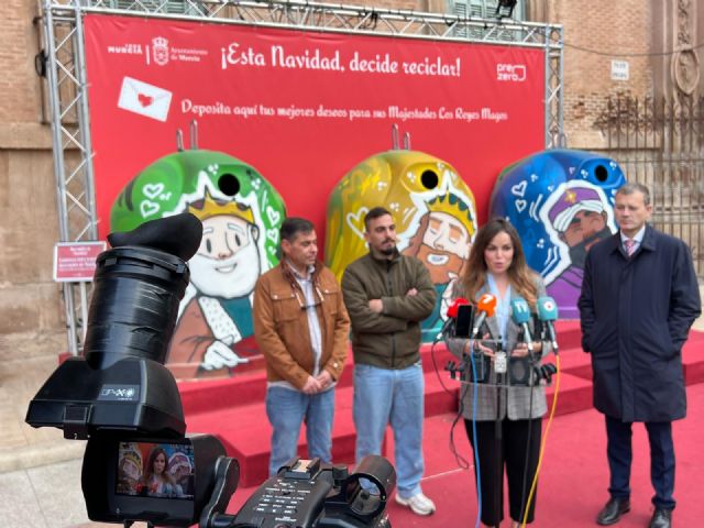 El Ayuntamiento de Murcia, a través de la concejalía de Fomento y Patrimonio, dirigida por Rebeca Pérez y en colaboración con PreZero, ha presentado esta mañana los tres contenedores mágicos que recogerán todas las cartas de los niños y niñas, los cuales se ubican en el Mercadillo de la Glorieta.