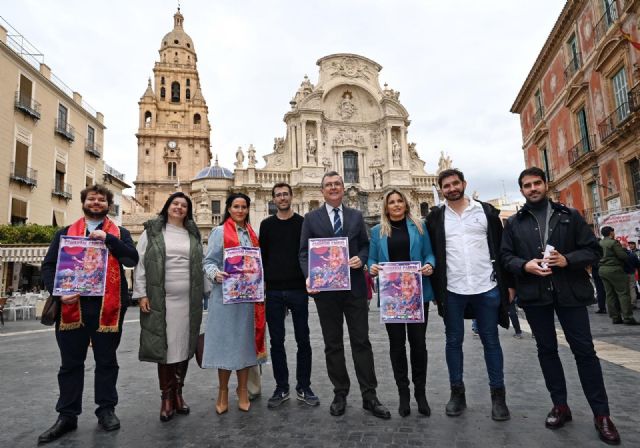 El concejal de Cultura e Identidad, Diego Avilés han presentado esta mañana el cartel del Carnaval de Cabezo de Torres 2025, una creación que rinde homenaje a figuras icónicas de la tradición local junto a coloridos grupos de carnaval y una representación del original Carnaval de las Mascotas, una de las iniciativas más entrañables del evento.