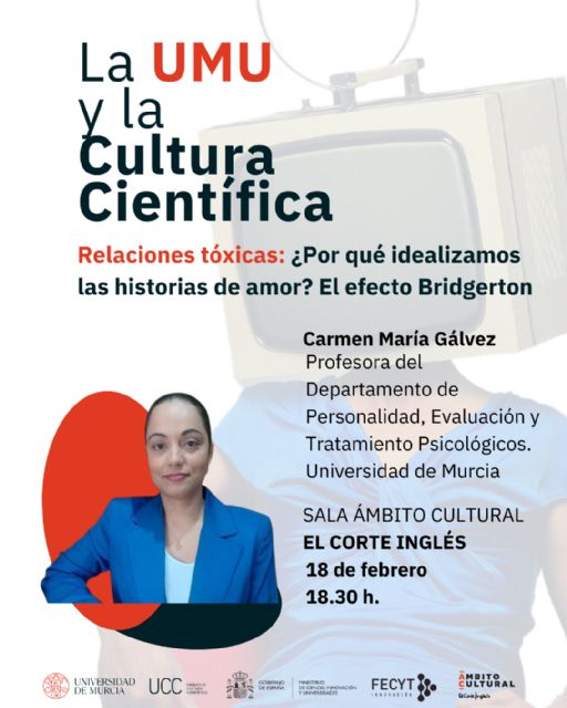 El próximo 18 de febrero a las 18:30h en la Sala de Ámbito Cultural de El Corte Inglés, la Universidad de Murcia (UMU) impartirá una nueva ponencia del ciclo de conferencias 'La UMU y la Cultura Científica'. Esta tratará un tema que está a la orden del día: los amores tóxicos, las llamadas "red flags" y cómo saber identificar estas señales. Aprovechando también la cercana fecha de San Valentín, la profesora de psicología Carmen María Gálvez abordará cómo practicar un amor respetuoso y equilibrado.