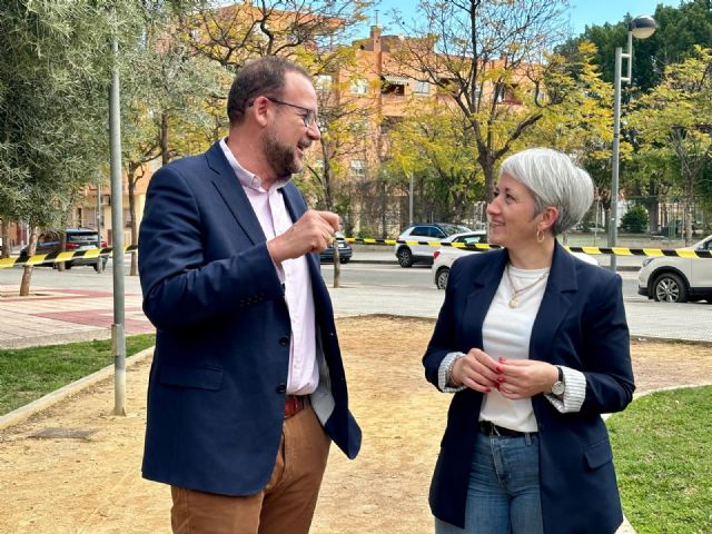 El concejal de Desarrollo Urbano y Ciudad Inteligente, José Guillén, junto a la pedánea, Verónica Sánchez, han visitado los trabajos de instalación de las nuevas farolas con tecnología led en el Jardín pintor Pedro Cano, la Plaza de la Democracia y el casco urbano