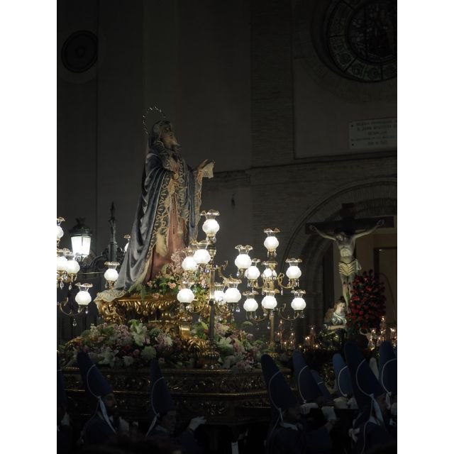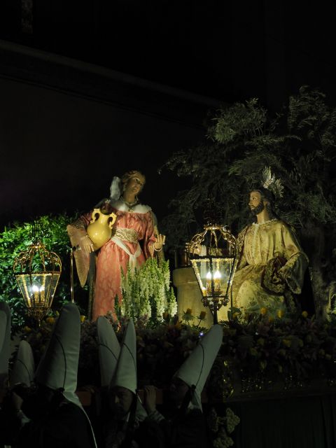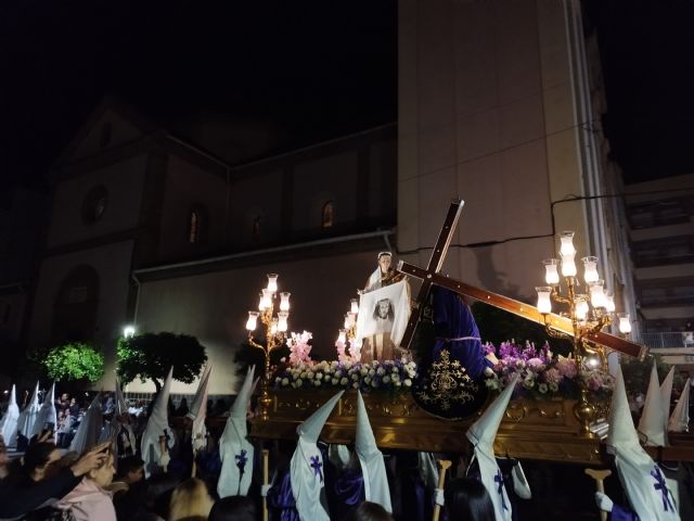 Cerraba la Virgen Dolorosa, reina del Miércoles Santo beniajanense, mecida siempre con los acordes de la banda titular de la Agrupación Musical de Beniaján. Tampoco faltó en la presidencia el acompañamiento de autoridades regionales y locales, como el Consejero de Educación o el Concejal de Seguridad Ciudadana, el alcalde de Beniaján, miembros de su junta municipal y representantes de otros pueblos vecinos. Estaban también las reinas mayor e infantil de la Peña El Azahar, enriqueciendo con sus refajos el cortejo de túnicas, mantillas y capirotes.