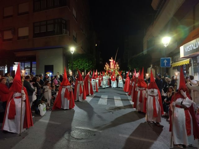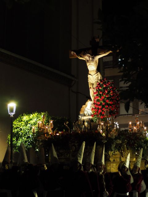 El Crucificado salió a la Calle Mayor, concurridísima, acogiendo con sus brazos extendidos la fe de todo un pueblo. Detrás, el Santo Sepulcro, obra cumbre del imaginero local José Ortiz. Dicen los entendidos que es un yacente único en todo levante, impresionante en su composición y conmovedor en su contemplación.