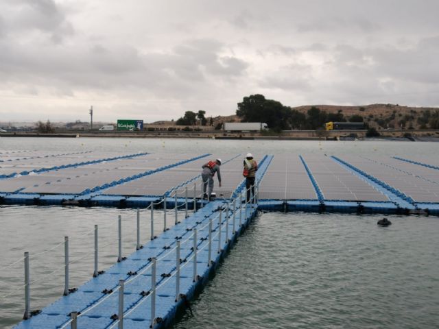 El concejal del ramo, Antonio Navarro, ha explicado que este proyecto, pionero en la Región, cuenta con dos fases de actuación y que en esta primera ya se han instalado 540 estructuras flotantes, de 565 W cada una, y con una producción de 300 kW/hora.