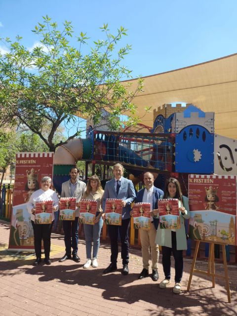 Así el cartel del festival de este año es un dibujo infantil que representa a la figura del Rey Alfonso X con el corazón y las llaves de Murcia, y una ilustración del libro que recoge la historia de la ciudad. Otros símbolos de identidad que aparecen en esta ilustración son el Rey Lobo, el Castillejo, el Castillo de Monteagudo, la sultana Zaida, la torre de la Catedral, la Huerta, el acueducto y la noria.