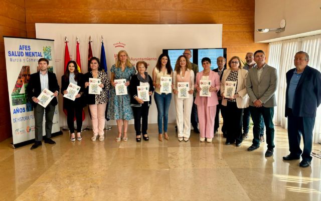 Murcia se suma a la conmemoración del 45 aniversario de AFES Salud Mental Murcia y Comarcas con la presentación de una memoria retrospectiva y un documental que recogen la trayectoria de la asociación en la atención a personas con problemas de salud mental y sus familias. El acto, que se enmarca dentro de la programación del Ayuntamiento de Murcia con motivo de la Semana Europea de la Salud Mental, ha contado con la participación de las ediles de Gobierno Abierto, Promoción Económica y Empleo de Murcia, Mercedes Bernabé, y de Mujer, Políticas de Conciliación, Mayores y Discapacidad, Ascensión Carreño; y así como la concejal de Servicios Sociales de Las Torres de Cotillas, María Dolores Sánchez; la Directora general de Personas con discapacidad del IMAS, Miriam Pérez, y la presidenta de AFES, María Teresa Martínez.