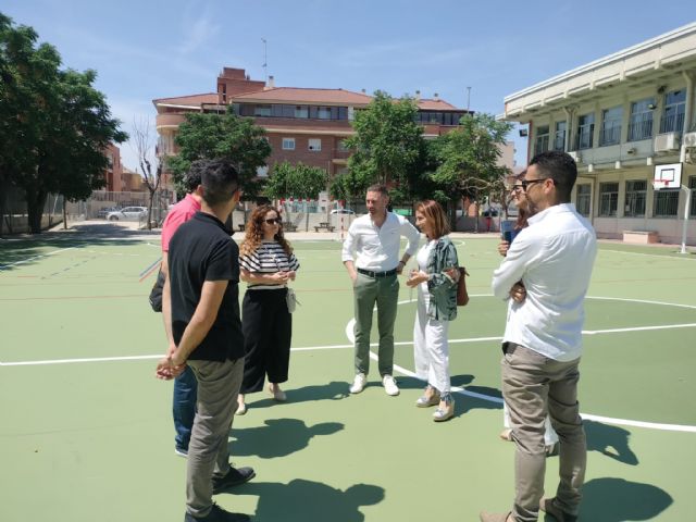 El centro educativo Pedro Pérez Abadía, en Espinardo, ya cuenta con una nueva pista polideportiva renovada para que los más de 250 alumnos matriculados puedan seguir practicando las actividades deportivas en un espacio más seguro y accesible. Los concejales de Educación y Atención a la Ciudadanía, Belén López, y de Deportes, Miguel Ángel Noguera, han visitado esta obra ejecutada con un presupuesto de 41.000 euros.