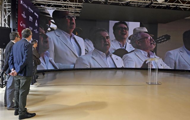 El alcalde de Murcia, José Ballesta, durante la presentación del videoclip que ha tenido lugar en el Ágora Tech Hub Audiovisual de Murcia, ha destacado que "los Parrandboleros representan, como esa idiosincrasia única y privativa de las gentes de Murcia. Ellos tienen ese carácter alegre, carácter vitalista, vibrante, generoso, abierto, lleno de energía, sensible y lírico. Ellos, como nadie, saben interpretar, como digo, la esencia última de lo murciano", quien ha añadido que "son nuestros mejores exponentes internacionales de la música hecha en Murcia. Ellos llevan a Murcia por todo el mundo".