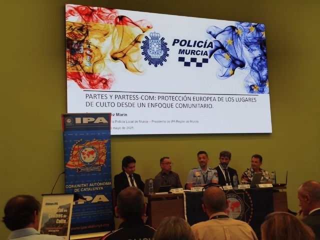Durante el evento, la Policía Local de Murcia tuvo una participación especialmente relevante a través de dos miembros de su Departamento de Proyectos Europeos, quienes intervinieron en la mesa redonda titulada "El futuro de la gestión de la seguridad en los centros de culto".