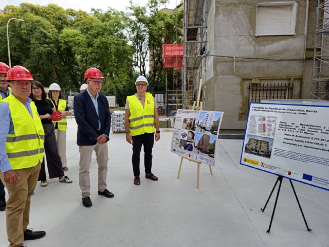 Reducción de gastos energéticos, mayor confort interior, menor impacto ambiental, mayor protección del edificio frente a humedades, y la mejora de la calidad del aire interior son algunos de los beneficios que conllevan las actuaciones de mejora que se están realizando en edificios beneficiarios de las ayudas destinadas a la rehabilitación a nivel de barrio en Entorno de rehabilitación Residencial Programada (ERRP) MURCIA 1 Barrios. El concejal de Planificación Urbanística, Huerta y Medio Ambiente, Antonio Navarro, ha visitado los 3 primeros edificios en los que ya se están ejecutando estas ayudas, ubicados en el Barrio del infante, y que les supondrá un ahorro en la factura de la luz en casi 40.000 euros anuales para las 84 viviendas.