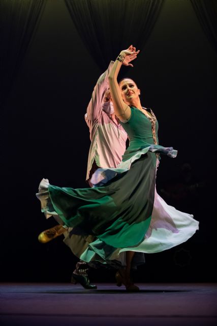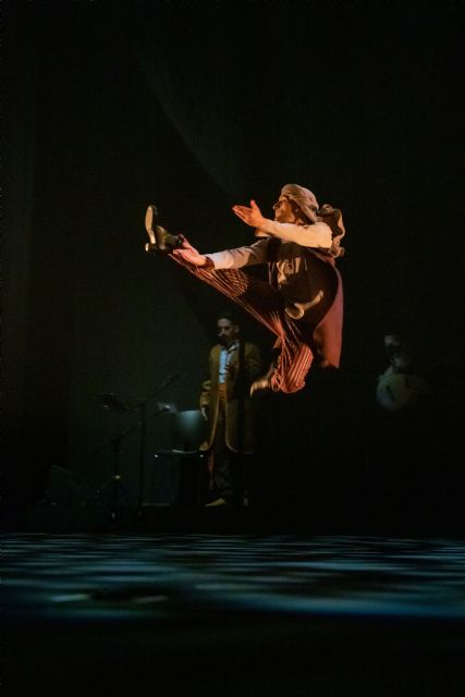 El espectáculo despliega sobre el escenario un elenco de trece bailarines que dan vida a esta fantasía coreográfica a través del movimiento, el ritmo y la fuerza expresiva de la danza flamenca y estilizada. La pieza incorpora la voz en directo del actor Luis Martínez Arasa, que guía al público en un viaje poético por la Murcia andalusí, aportando una dimensión narrativa cargada de matices. Todo ello arropado por la música en directo compuesta y dirigida por Faustino Fernández, con sonoridades que beben del flamenco y de la tradición andalusí. Guitarra, violín, laúd, percusión y cante se funden para crear una atmósfera viva y envolvente que multiplica el poder evocador de la escena.