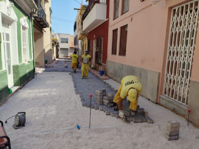 El Ayuntamiento de Murcia acondiciona la calle Álvarez Quintero de La Alberca con una nueva pavimentación en adoquín mejorando su accesibilidad