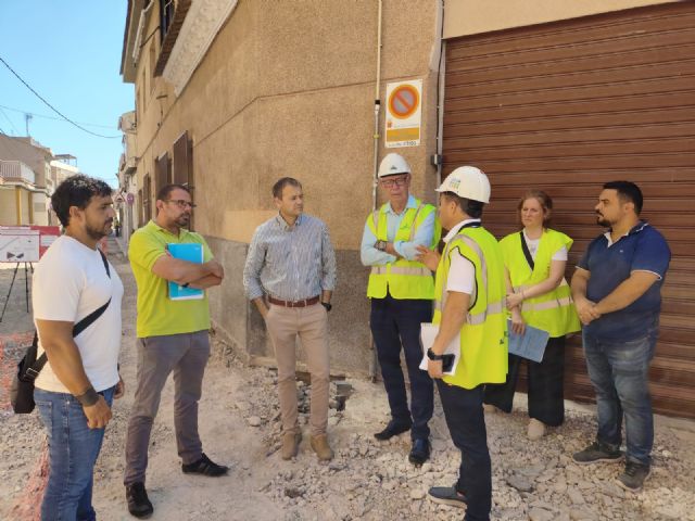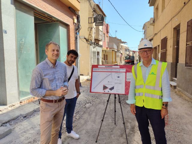 El concejal de Pedanías y Vertebración Territorial, Marco Antonio Fernández, y el edil de Planificación Urbanística, Huerta y Medio Ambiente, Antonio Navarro, junto al presidente de la Junta Municipal de Aljucer, José Gómez Marín, han visitado el inicio de las obras de mejora en la calle Cruz de la pedanía