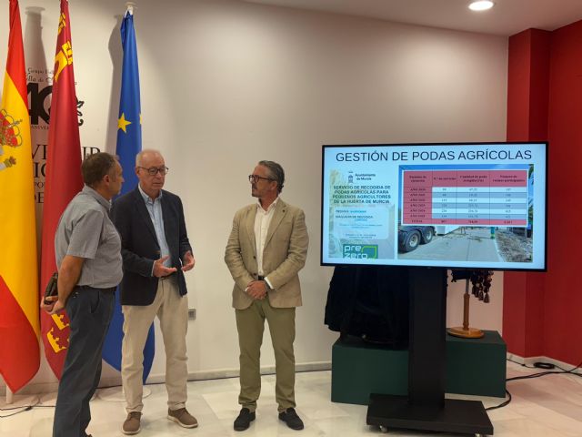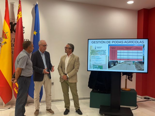 El edil del ramo, acompañado por el presidente de ASAJA, Alfonso Gálvez, y del director de PreZero en la Región, Antonio Igualada, ha destacado "el incremento de la concienciación de la población con el cuidado del medio ambiente, ya que se ha producido un considerable aumento de la demanda tanto del Servicio de Recogida de Podas Agrícolas para Pequeños Agricultores de la Huerta de Murcia, como de la Trituración de Restos de Podas Agrícolas para pequeños huertos, en una media de un 31% en ambos casos desde 2020".