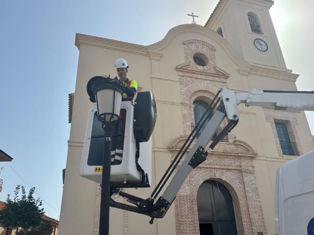 El Ayuntamiento de Murcia ha completado la renovación de la iluminación de las principales calles, avenidas, plazas y jardines de Alquerías. Así, la pedanía estrena 130 luminarias inteligentes con tecnología LED, que contribuirán a la reducción de más de 665 toneladas de CO2 a la atmósfera y al ahorro de unos 1.343.918 kwh a lo largo de su vida útil. El concejal de Desarrollo Urbano y Ciudad Inteligente, José Guillén, acompañado por el presidente de la Junta Municipal, José Luis Marín, y otros miembros de la Junta, ha supervisado las obras, que incluyen el entorno de la iglesia, punto emblemático de la pedanía.
