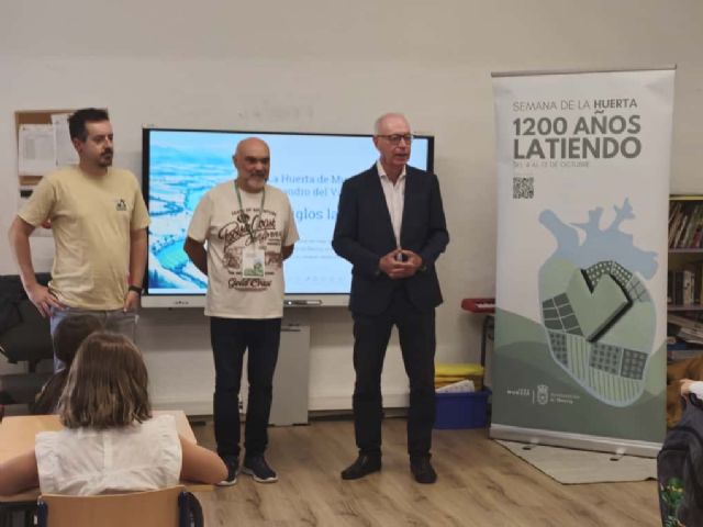 El concejal de Planificación Urbanística, Huerta y Medio Ambiente, Antonio Navarro, ha visitado esta mañana el CEIP Puente Doñana, en La Albatalía, donde cerca de 30 alumnos de 4º de Primaria han conocido la historia de la Huerta y la restauración del Meandro el Vivillo a través de vídeos y juegos, gracias al taller didáctico "Meandro del Vivillo, y la Huerta de Murcia.12 Siglos Latiendo", centrado en la historia, el valor ambiental y el futuro de la Huerta de Murcia. Esta actividad busca acercar al alumnado a uno de los sistemas hidráulicos más singulares de España, con más de un milenio de historia, y poner en valor el proyecto de recuperación del meandro del Vivillo, un enclave fundamental para la restauración fluvial del antiguo cauce del río Segura.