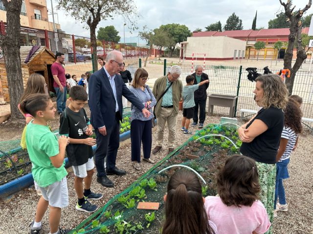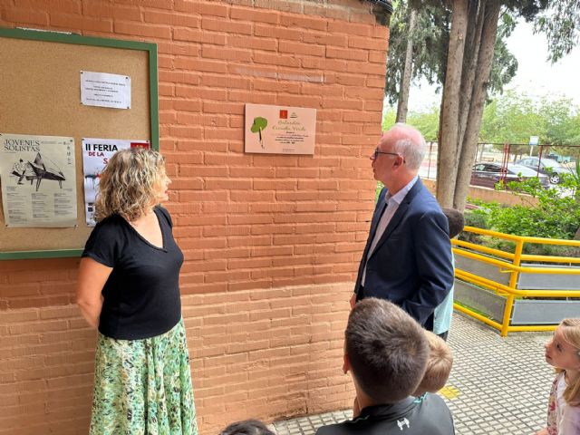 El colegio Ciudad de la Paz de El Palmar ya luce en su entrada al centro una placa de cerámica que lo acredita como el ganador del programa municipal Escuelas Verdes. El concejal de Planificación Urbanística, Huerta y Medio Ambiente, Antonio Navarro, ha hecho entrega del galardón por el programa educativo llevado a cabo durante el curso pasado 2024/25 y que ha conseguido, entre otras cuestiones, reducir la producción de residuos e involucrar a la comunidad educativa en alcanzar el objetivo.